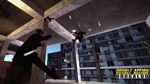 Double Action: Boogaloo – экшен-шутер от третьего лица с многопользовательским режимом, где игрокам предстоит нырять, переворачивать все верх дном на локации и погружаться в хаос боевика. Здесь геймеры будете делать сальто с лица противника, а после нырять в окно, стреляя из позолоченных пистолетов. Подобный элемент в процессе называется двойное действие. Сзади происходят взрывы, а кто-то украл портфель, полный денег. Теперь главному герою предстоит добраться до вора и вернуть свои средства.